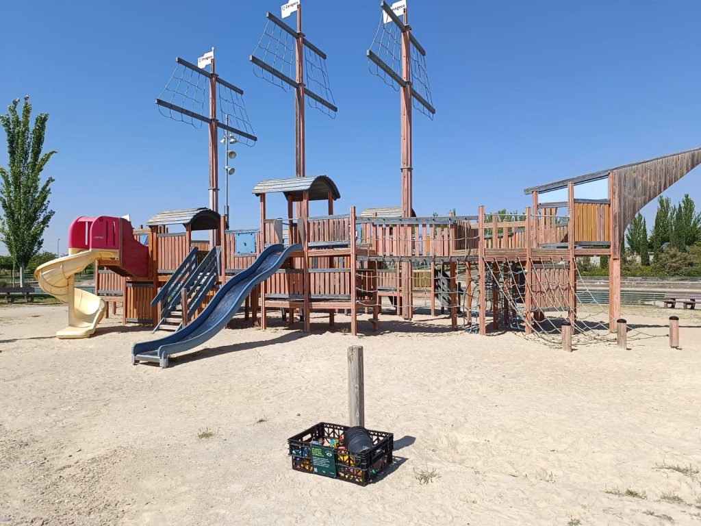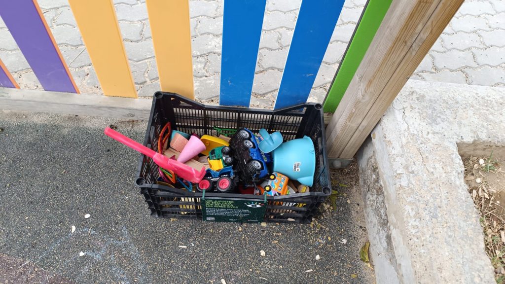 Han dejado cajas de fruta llenas de juguetes en varios parques para que todos los seres vivos puedan jugar al aire libre. Invitan además a todas las familias a dejar en esas cajas los juguetes que ya no usan, para que otros peques les den una nueva vida.