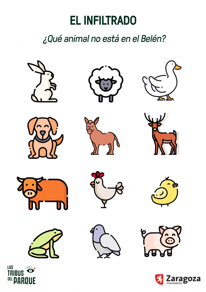 ¿Sabíais que el Belén de la Plaza del Pilar es muy especial? Sí, así es, y no solo porque es el Belén más grande de España, sino porque también es un Belén mágico. Hace dos años descubrimos que algunas de las figuras cobraban vida por la noche (Pincha aquí si queréis jugar a ese juego). Este año, nos han hecho llegar una ficha llena de imágenes de diferentes animales y quieren que averigüemos qué animal no está en el Belén. ¿Os animáis a descubrirlo?